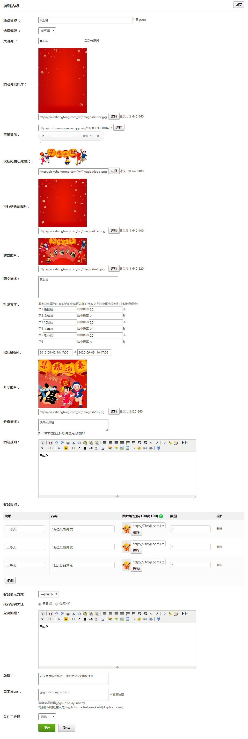 刷新页面,点击左侧功能管理栏——微活动——点灯笼